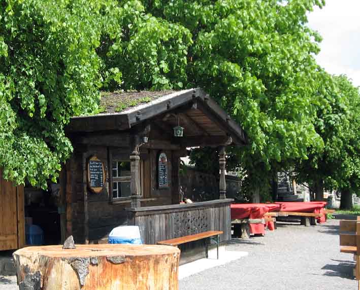 Und die Brettljause ist eigentlich nur eine kleine Hütte mit einem kleinen Biergarten.