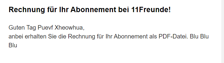 Die KI, die bei den 11 Freunden die Abo-Rechnungen verschickt, scheint ein wenig verwirrt zu sein.