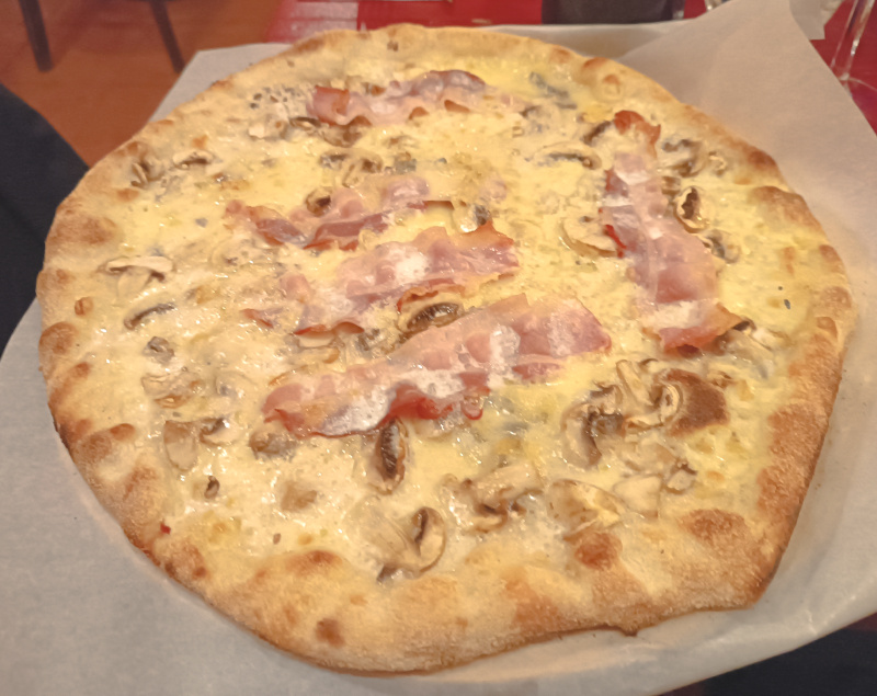 Kulinarischer Wochenhöhepunkt war eine ganz ausgezeichnete Pizza Bianca („Tirolese“: mit Gorgonzola und Speck) im nicht nur wegen der Pizzen sehr empfehlenswertem „Cafe Aroma„: