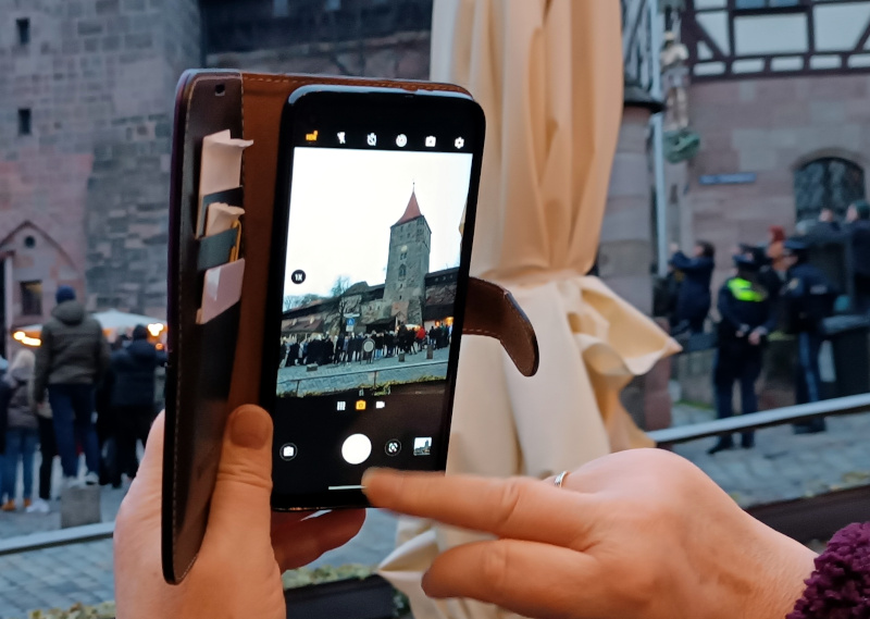 Neuer, welterfolgsverdächtiger Beitrag zu meiner einmaligen Fotoserie „Die beste, geduldigste Gemahlin von allen fotografiert Dinge“. Hier: die Nürnberger Altstadt.
