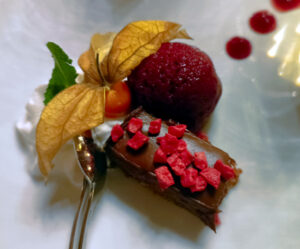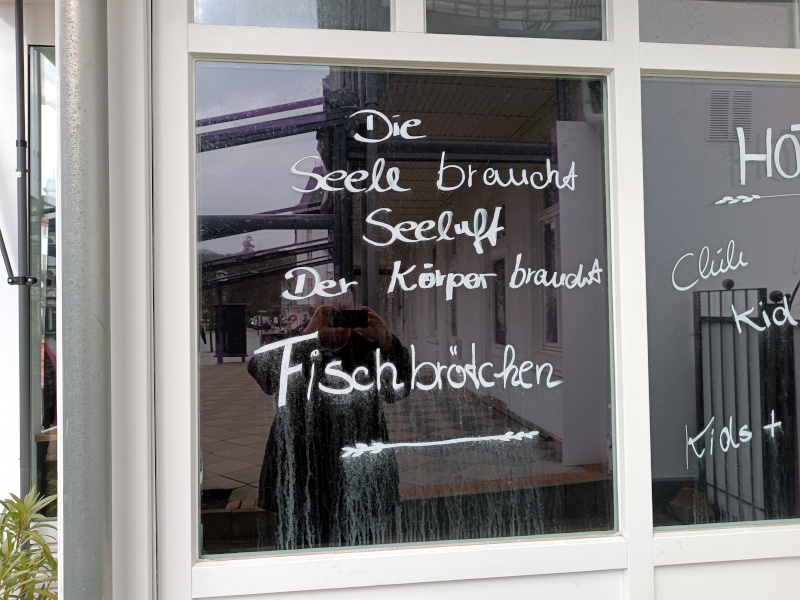 Beim kulinarischen Wochenhöhepunkt wurde allerdings nix eingepackt. Auf den Besuch meines deutschen Lieblingsrestaurants, der Strandhalle in Binz, hatte ich mich monatelang gefreut, und tatsächlich wuchsen das ausgezeichnete Essen, der freundliche Service und die einmalige Atmosphäre dieses Orts wieder zu einem erinnerungswürdigen Erlebnis zusammen. Da passte nach der „Bouillabaisse des Nordens“ mit Thunfisch-Aioli sogar noch ein Mini-Dessert rein, ein Stückchen Schokotarte mit einer Kugel Waldbeereneis. Das war so köstlich, dass ich ihnen sogar die dümmliche, stets überflüssige Stapkachelbeerendeko verzieh.