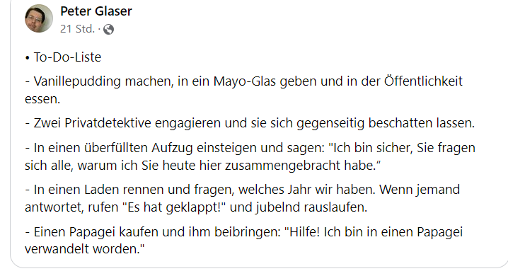 Peter Glaser hat dieser Tage auf Facebook einige hochinteressante Vorschläge unterbreitet: