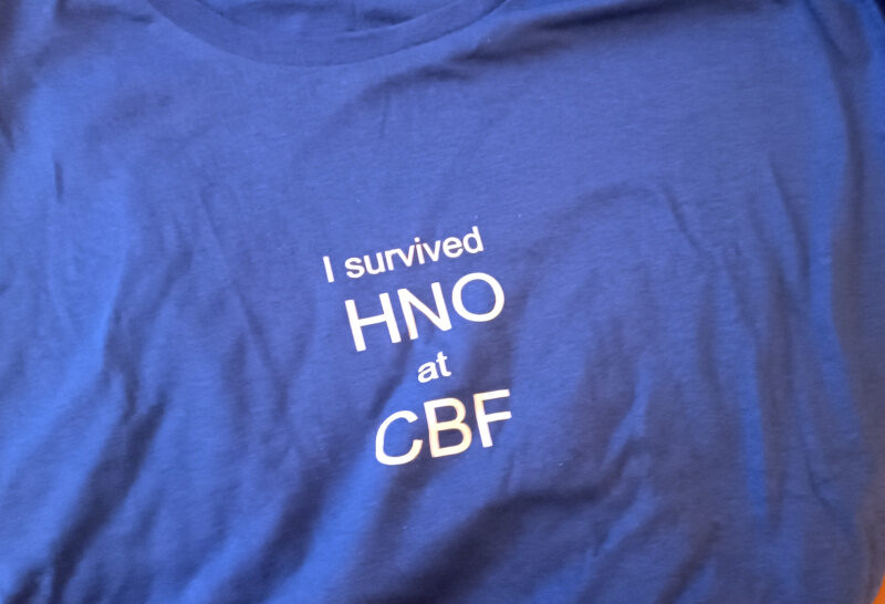 Vor ein paar Tagen bin ich für ein paar Tage und Untersuchungen noch einmal in die HNO am Campus Benjamin Franklin eingecheckt: Alles bestens, kein Krebs mehr weit und breit. Dafür war die Organisation tatsächlich nochmal katastrophaler geworden als vor einem Jahr, ich feierte meine Entlassung mit einem neuen T-Shirt.
