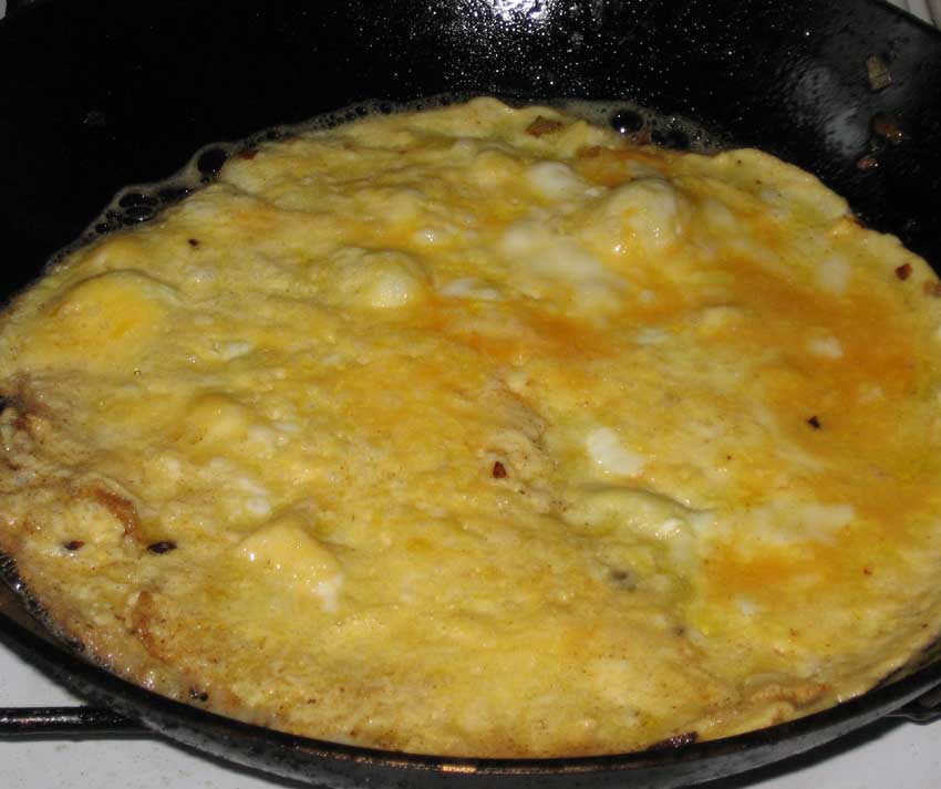 Eine Eisenpfanne darf nicht mit Spülmittel in Berührung kommen. Nach der Benutzung wird sie mit Küchenpapier ausgewischt, bzw. bei hartnäckiger Verschmutzung mit heißem Wasser und Bürste bearbeitet. So bildet sich mit der Zeit eine Patina in der Pfanne, die sozusagen die Mutter aller Beschichtungen ist. Quatsch, was schreib ich, die Patina dieser Eisenpfannen entlarvt die Erfinder moderner Teflon-, Silverstone- oder Wasweißichschon-Beschichtungen als notorische Lügenbolde, denn keine moderne Beschichtung kann einer Eisenpfannenpatina auch nur annähernd das Wasser reichen. Wer schon mal erlebt hat, wie sanft ein Omelette aus so einer Pfanne gleitet, der verwendet den angeblich aus der Raumfahrtforschung stammenden Murks nur noch unter Gewaltandrohung.