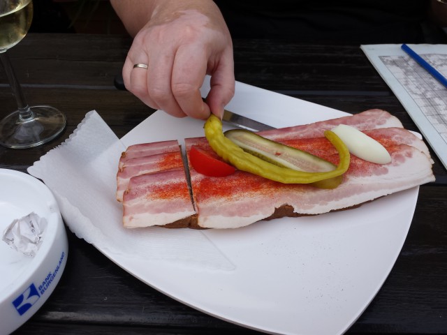 2015-08-21 18.43.49Gleichzeitig kulinarisches Highlight und Wort der Woche: Grammelpogatschen (Hefegebäck mit Speckgrieben).