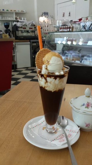 Kulinarischer Wochenhöhepunkt: Herrlicher Old-School-Eiskaffee bei Vanille & Co. Old School bedeutet beim Eiskaffee: der Kaffee muss sehr, sehr stark und sehr, sehr bitter sein, dass es einen schönen Kontrast zum Eis und zur Sahne gibt.