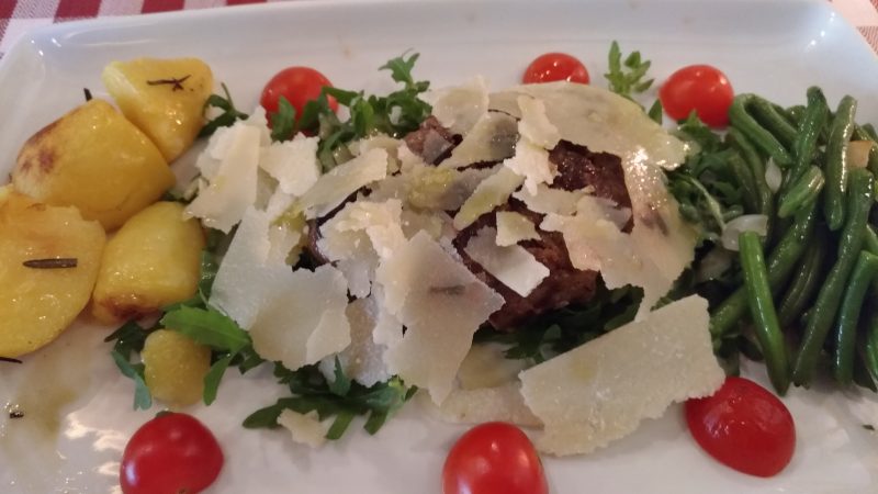 Kulinarischer Wochenhöhepunkt: Tagliata vom Rinderfilet beim Lieblings-Italiener „Mare Monte“. Auch wenn man’s nicht sieht: das Filetto unter dem großzügig drüber gehobbelten Parmesan war butterzart medium-rare gebraten. Ganz großes Tennis.
