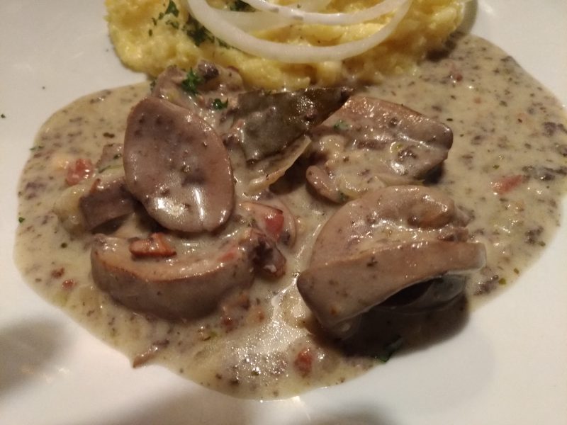 Unfotografierter kulinarischer Wochenhöhepunkt: Ein butterzart geschmorter Braten aus der Rinderschaufel, von meinem Lieblingskoch Dieter K. bei sich Zuhause für uns zubereitet. Ein Gedicht. Hier der Runner-Up, köstlich zarte, sahnige Nierchen im Marjellchen.