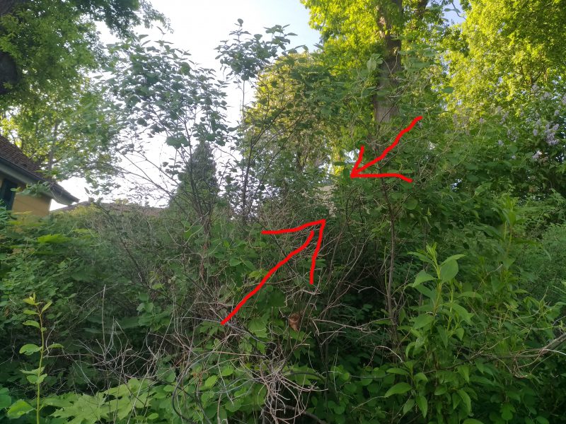 Auf dem zugewachsenen Schild steht tatsächlich „Kein Durchgang“ (am Schlachtensee).