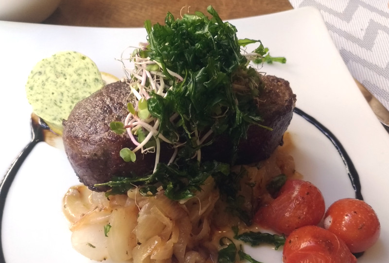 Gesellschaftlicher Höhepunkt der Woche war ein Kurztrip nach Eschwege, um die Schwester und den ältesten Freund wiederzusehen. In der kalten Heimat gab es dann auch den unfotografierten kulinarischen Wochenhöhepunkt, frische, grobe Rostbratwurst auf die Hand im Brötchen mit Senf. Das reinste Manna. Den Runner-Up habe ich abgelichtet, perfektes Rumpsteak mit Zwiebeln und Kräuterbutter im „Goldenen Engel„.