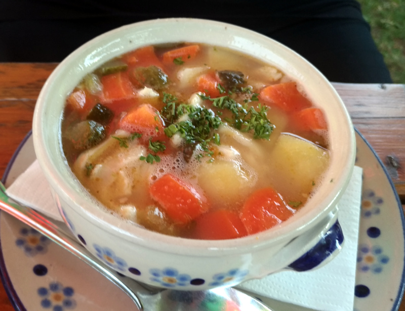 Kulinarischer Wochenhöhepunkt: eine deftige, trotzdem sehr delikate Flecksuppe in der Dammschenke in Jonsdorf. Jonsdorf ist überhaupt ein sehr empfehlenswerter Ort. Brachiale Faller-Häuschen-Idylle, angenehme Ausflugsgastronomie, preiswerte, komfortable Unterkunft und… die Waldbühne.
