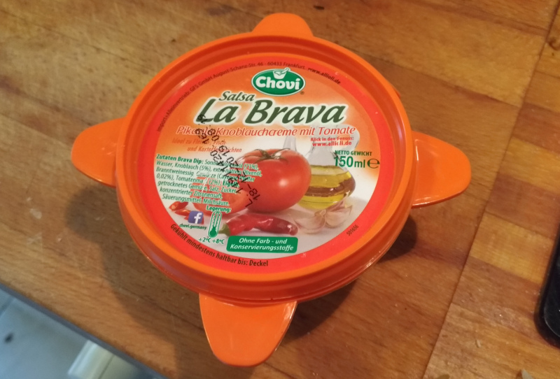 Die kulinarische Entdeckung der Woche machte ich bei Edeka im Kühlregal. Diese scharfe, tomatisierte Ailloli ist sensationell. Wenn ich selber eine Rouille rühre, bin ich froh, wenn sie so schmeckt (keine Werbung, spontane Empfehlung).