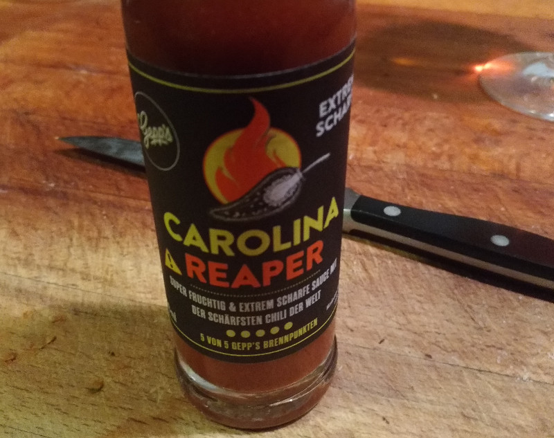 Die kulinarische Entdeckung der Woche verdanke ich mal wieder der besten, geduldigsten Gemahlin von allen, die mir von einer – viel zu langen – Reise nach Leipzig diese Sauce eines kleinen Herstellers mitbrachte. Es handelt sich eher um eine Würzsauce, mit der man andere Saucen ergänzt. Um sie solo übers Essen zu kippen, ist sie schlicht zu dünnflüssig. Und zu scharf, die hat wirklich ordentlich Wumms. Und ein sehr schönes, fruchtiges, an Zinfandel erinnerndes Aroma.