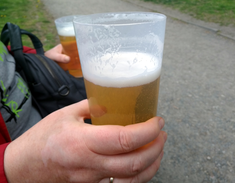 Kulinarischer Wochenhöhepunkt: das erste Bier vom Fass seit 6 Wochen (im Golgatha am Kreuzberg „to go“ geholt).