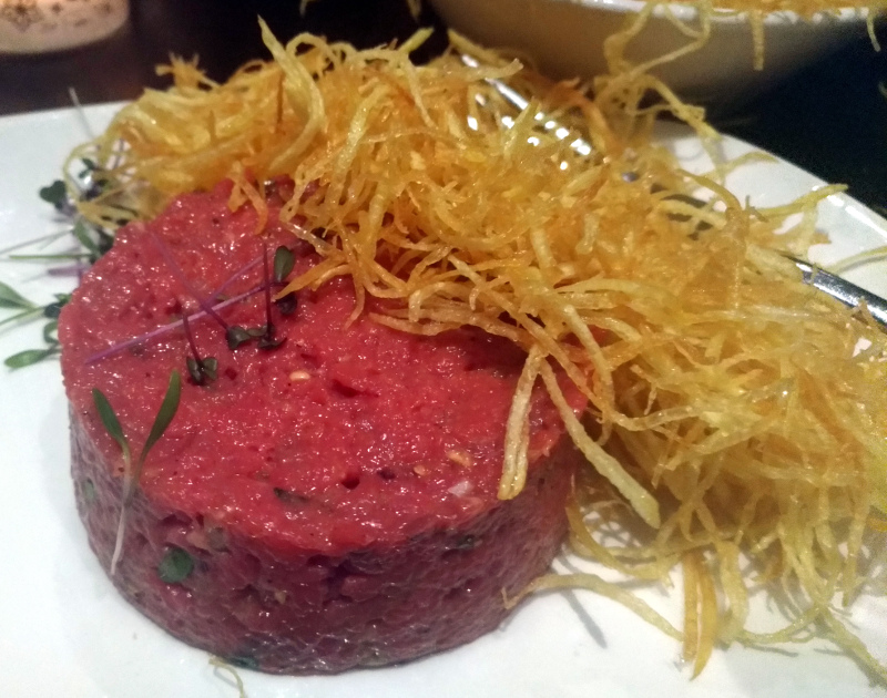 Ulkigerweise habe ich Steak Tatar mit Strohakrtoffeln zum ersten Mal in Münchem gegessen, in einem kleinen, französischen Restaurant in Schwabing, das hieß „Occam Bistro“. Den Laden gibt’s (natürlich) nicht mehr.