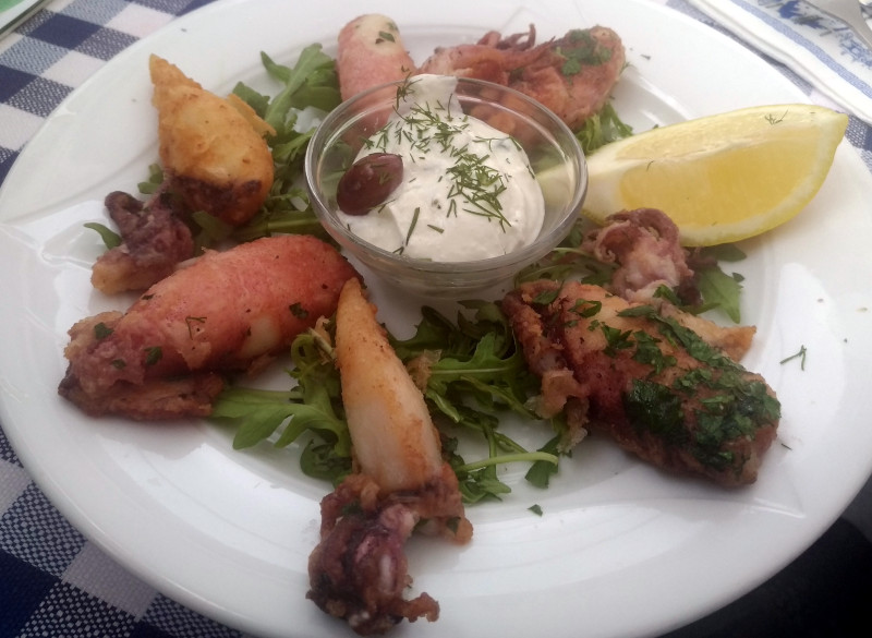 … konnte aber nicht wirklich gegen meine selbst gebratenen Heringe vom Montag anstinken1, die ihrerseits nicht gegen die unnachahmlichen Calamaria in Knoblauchöl in der Taverna Pigasos anstinken2 konnten.