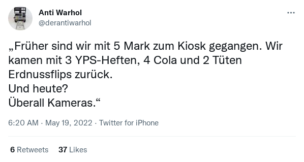 Der Tweet der Woche sei ein uralter Hut, wurde mir mehrfach gesagt. Ist mir vollkommen egal, ich hab trotzdem gelacht.