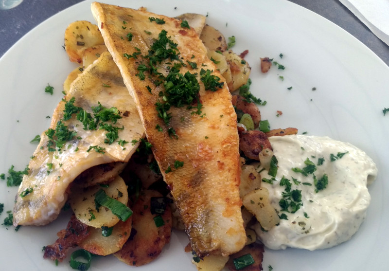 Der für den Samstagmittag geplante kulinarische Wochenhöhepunkt – ein Mittagessen im Fischrestaurant „Arielle“ in Werder fiel wegen Corona-Kollateralschaden aus: das A-la-Carte-Restaurant hat bis September geschlossen, es fehlt an Mitarbeitern. Das am Imbiss erstandene gebratene Zanderfilet mit Bratkartoffeln war zwar mehr als anständig…