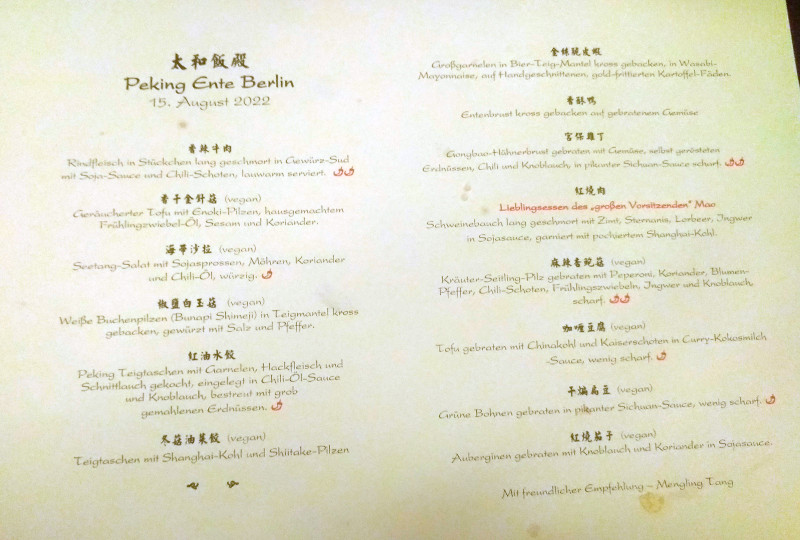Kulinarischer und gesellschaftlicher Wochenhöhepunkt war ein fantastisches Menü in der „Peking Ente„, das Peter Jebsen organisiert hatte. 13 seiner Freunde und Bekannte – darunter einige höchst geschätzte Ex-Qyper – verdrückten gemeinsam diese durchweg sensationellen Gerichte:
