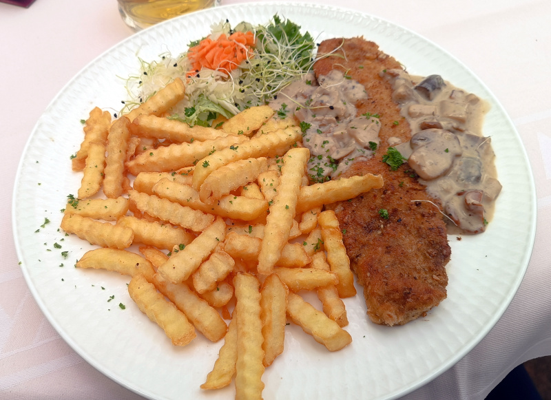 Der Vollständigkeit halber sei jetzt auch noch der dritte Platz erwähnt, der an ein aromatisches(!) Schnitzel mit Pilz-Sahnesauce im Angermünder „Hungerstein“ ging: