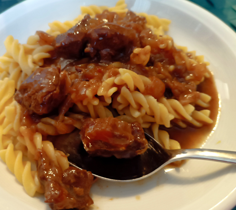 …aber dann ist mir am Wochenende ein praktisch beinahe perfektes Gulasch (eigentlich Pörkölt) gelungen..