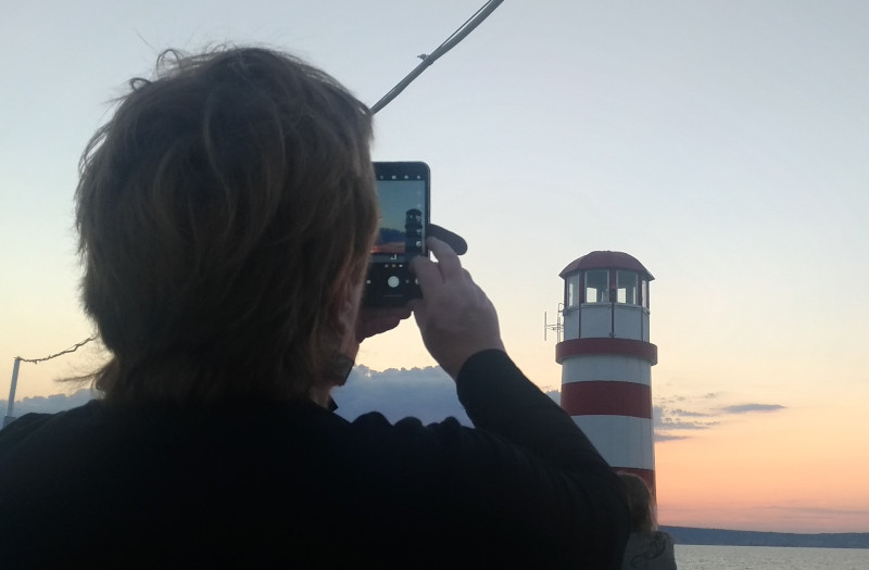 Wie man an der Reling sieht, hab ich diese an Bord aufgenommen, während einer „Sonnenuntergangsfahrt mit Weinverkostung“, einem Fixpunkt unserer Podersdorfer Urlaube.