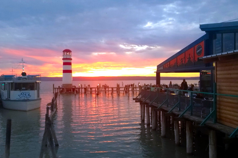 Sogar das Fernsehprogramm war aufregender als Zuhause. Auch wenn wir dieses Jahr so lange geblieben sind, dass die Grenze zwischen „Ferien machen“ und „Wohnen“ zu verschwimmen begann, irgendwann mussten wir uns schweren Herzens von den Podersdorfer Freunden verabschieden, die Koffer packen, den letzten Blaufränkisch trinken und den letzten Sonnenuntergang fotografieren.