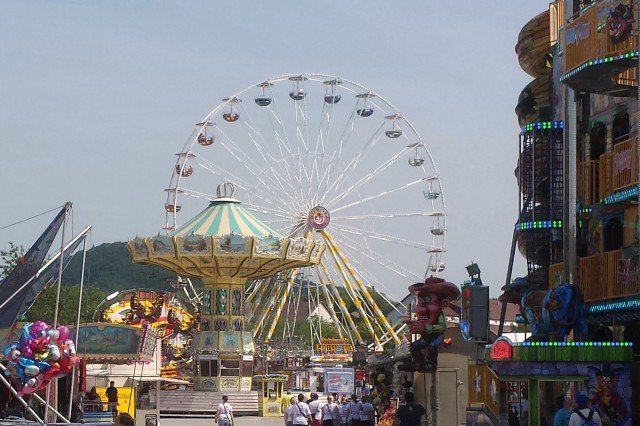 Der Dreiklang des Werdchens, der Festwiese: Kettenkarussell, Riesenrad und der Leuchtberg dahinter. Seit Jahrzehnten das gleiche Arrangement.