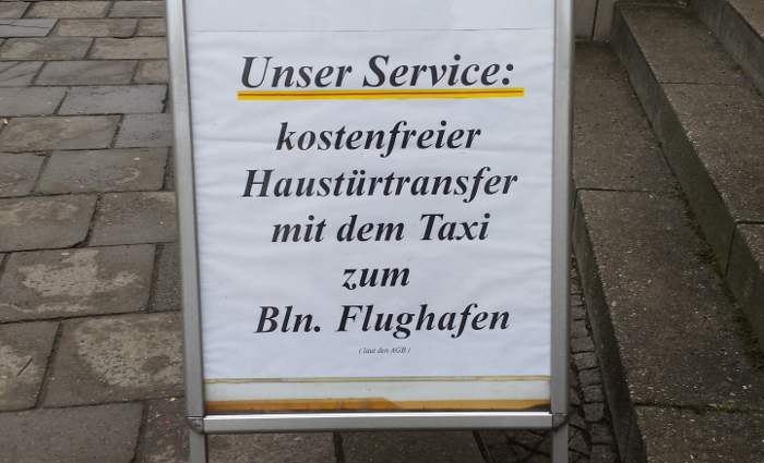Auch wenn es nix kostet: Warum zum Henker soll ich meine Haustür zum Flughafen schaffen lassen? Noch dazu mit dem Taxi?
